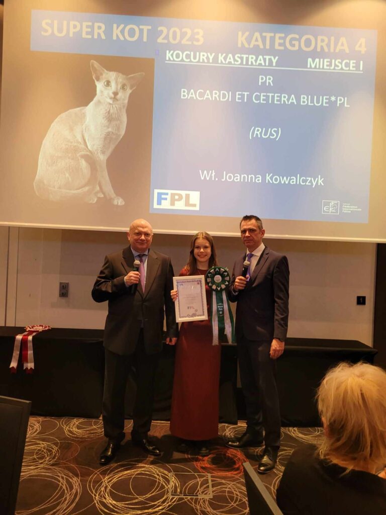 The evening’s National Winner and Super Cat 2023 awards ceremony was attended by: Barbara Parucka (Królewski Czar*PL), who collected the trophy for National Winner and three awards for her Super Cats, and Pola Kowalczyk, who collected the award for Super Cat on behalf of her mother Joanna Kowalczyk and their cat Bacardi (Et Cetera BLUE*PL). We congratulate you from the bottom of our hearts and wish you an endless string of successes! We are really very proud of you! ![]()